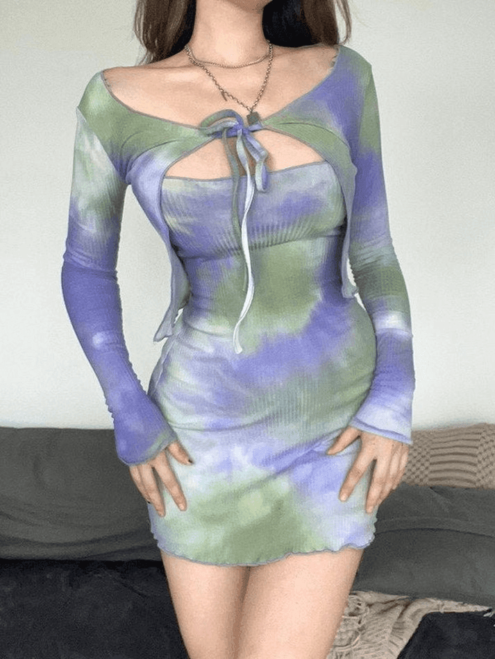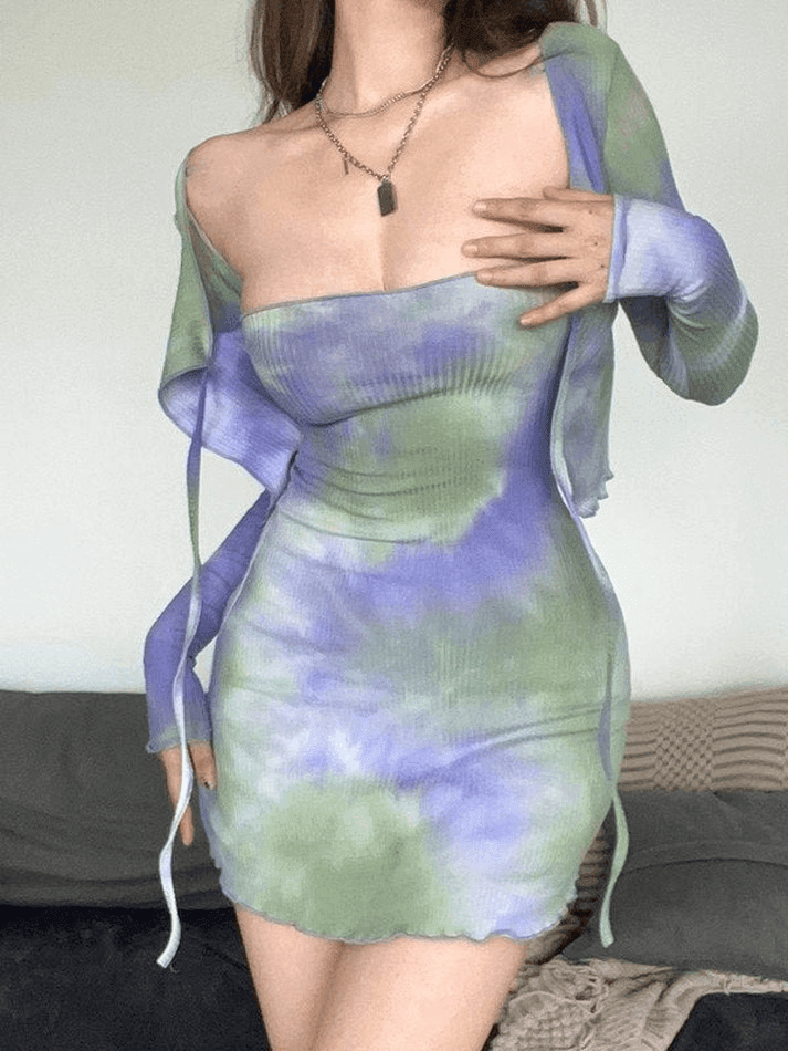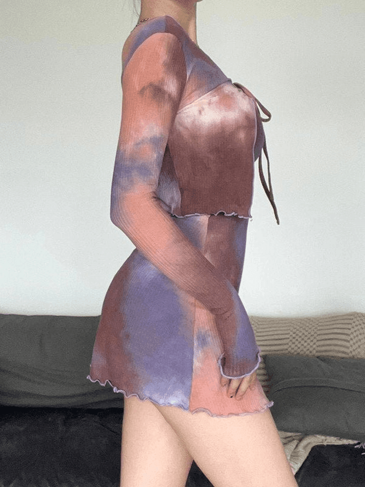 Tie Dye Ribbed Mini Dress Set