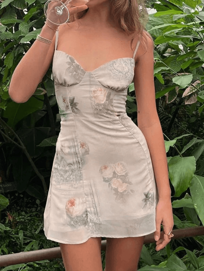 V-Neck Butterfly High Waist Slimming Suspenders Mini Dresses