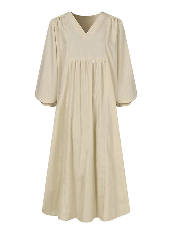 V Neck Lantern Sleeve Maxi Dress