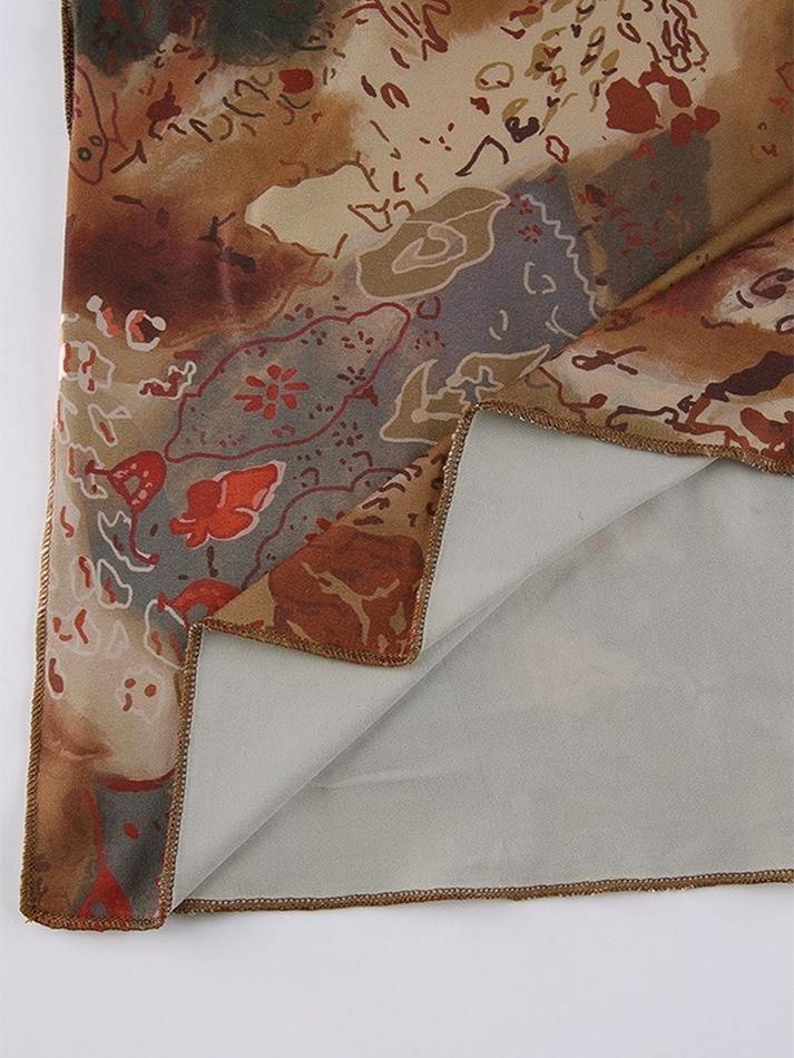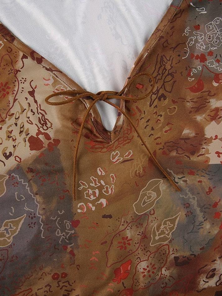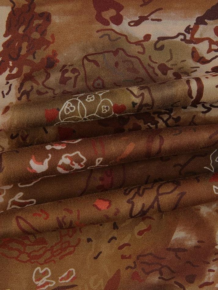 Design: Allover Print Detail. Split Cuffs. Split At Side Hem. Tie Neckline