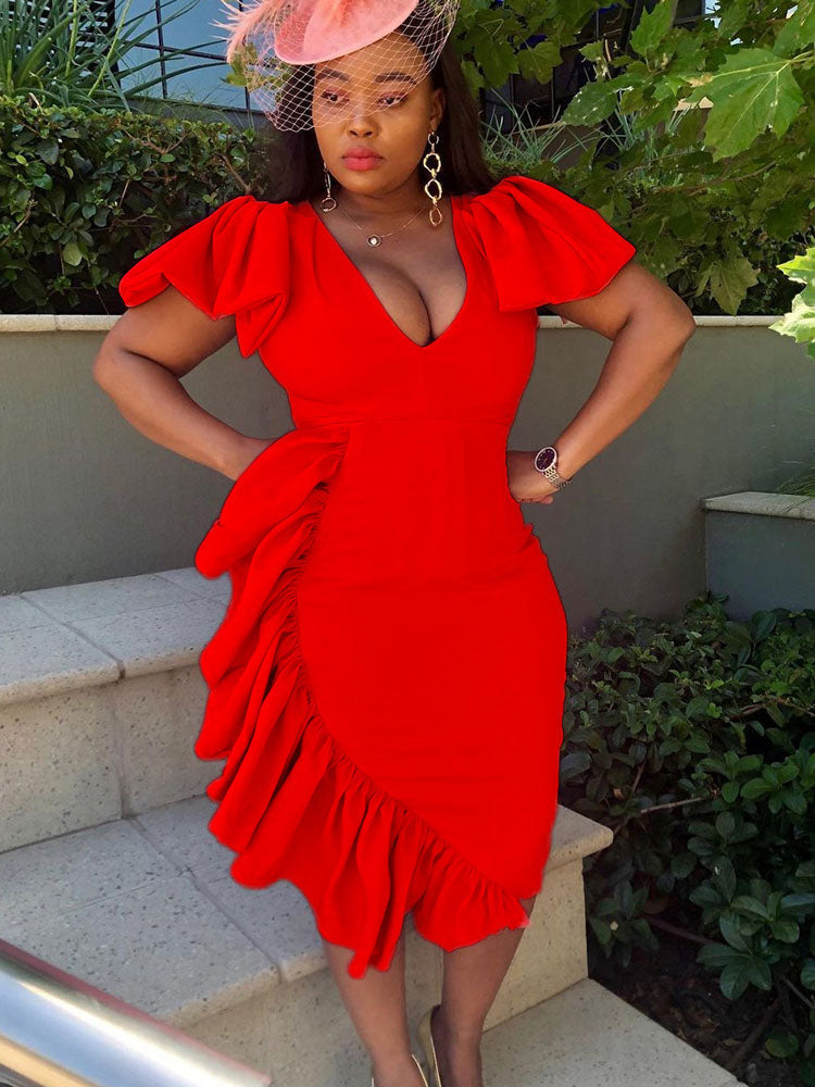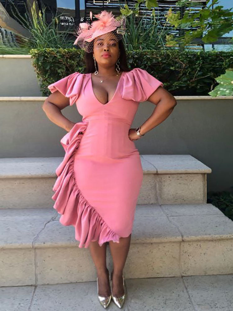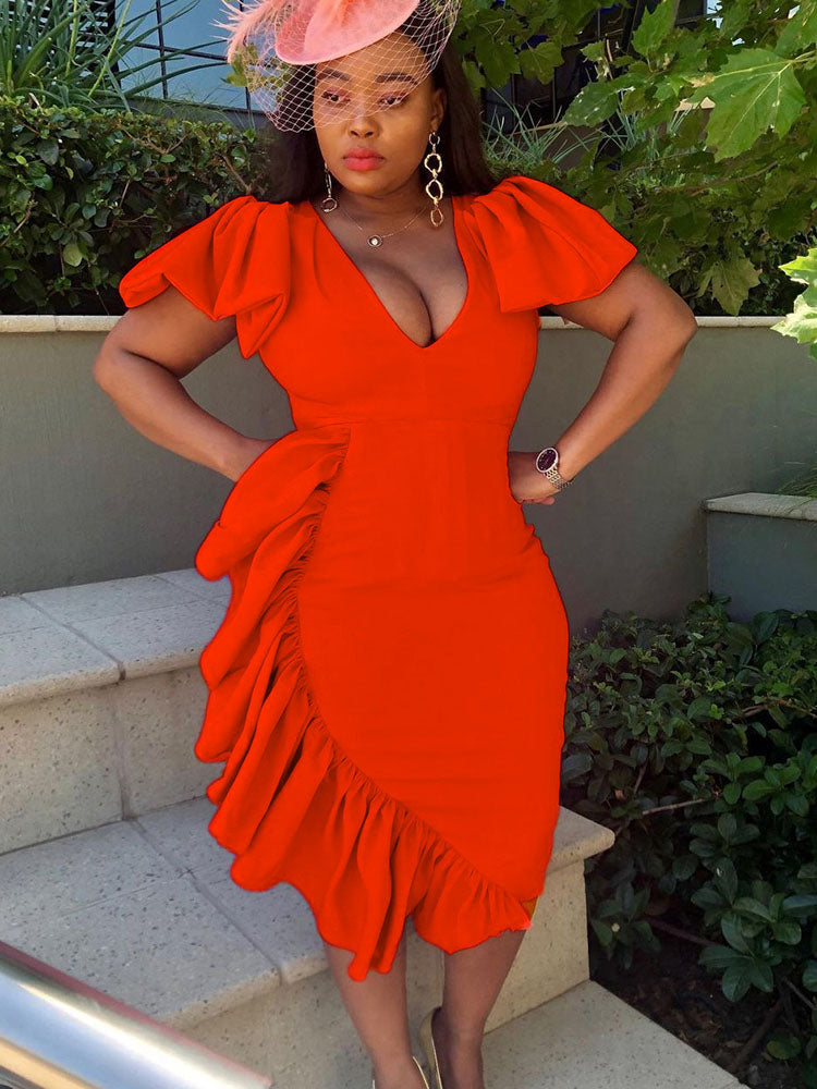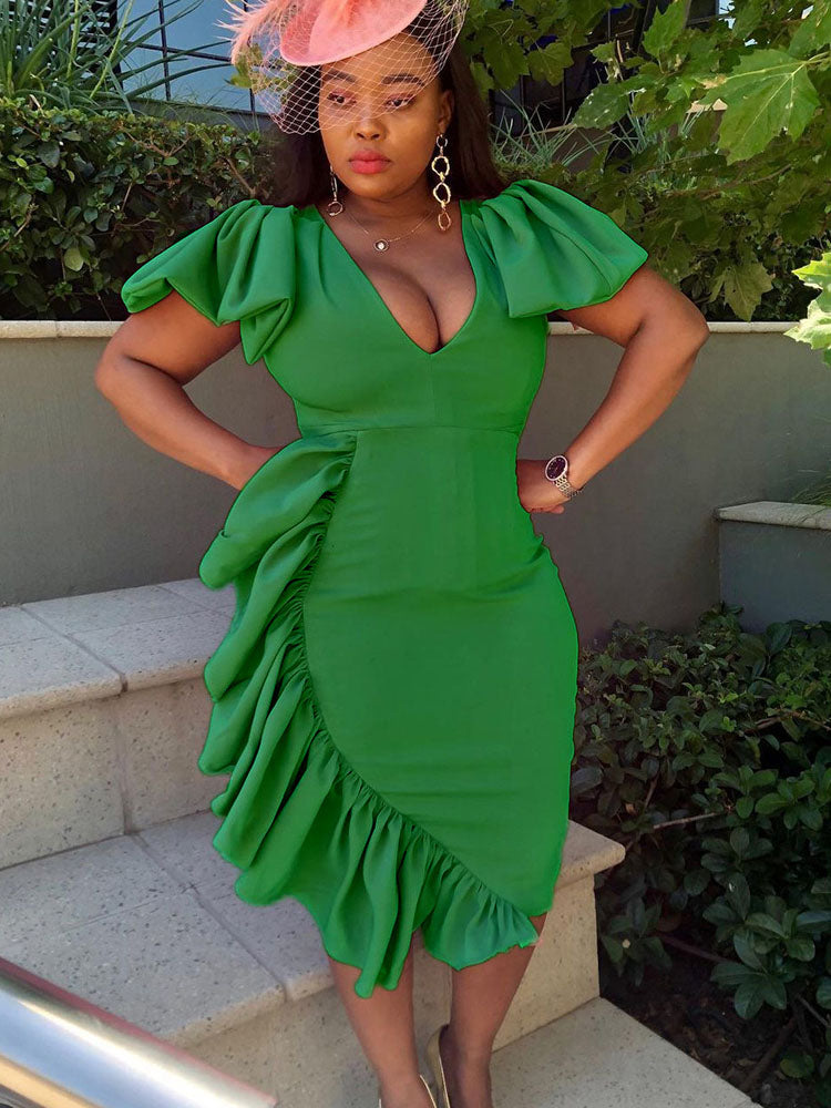 V Neck Stitching Irregular Dress