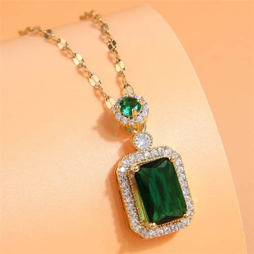 Indulge in the exquisite allure of the Verdant Square: Cubic Zirconia Costume Necklace. a testament to timeless elegance and sophistication. Crafted from high-quality copper and embellished with shimmering cubic zirconia. this necklace exudes a captivating charm that is sure to elevate any ensemble. The verdant green hue adds a touch of natural beauty. while the sleek square design lends a modern twist to its classic appeal.