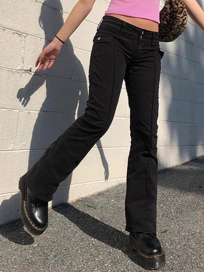 Description: Elevate your style with our vintage-inspired Low Rise Woven Pants. Crafted with care. these pants are designed to give you a trendy street look. Made from a blend of cotton and spandex. they offer a comfortable fit for your everyday wear. The regular fit accentuates your curves while providing freedom of movement. Featuring button detailing and convenient pockets. these pants combine fashion and functionality effortlessly. Step up your fashion game with these timeless classics.